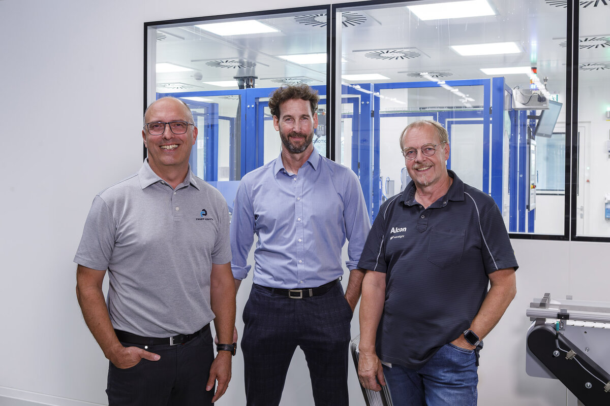 Picture: The minds behind the automation solution (from left): Jochem Pinger (Managing Director of Pinger Robotic) with Oliver Pfaff (Director of Manufacturing Operations) and Production Manager Hubert Witzl from WaveLight.