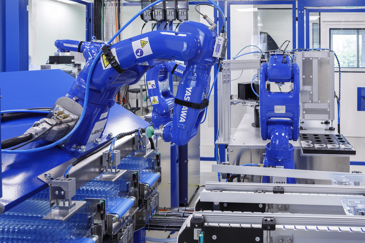 Initially, for Pinger Robotic, this order involved no more than automating the assembly of a camera-based testing system at medical technology specialist WaveLight. Further upstream and downstream handling steps were then added as the project progressed. The result is a handling and testing cell that is as complex as it is compact, in which a total of four MOTOMAN GP industrial robots from Yaskawa interact with high precision.